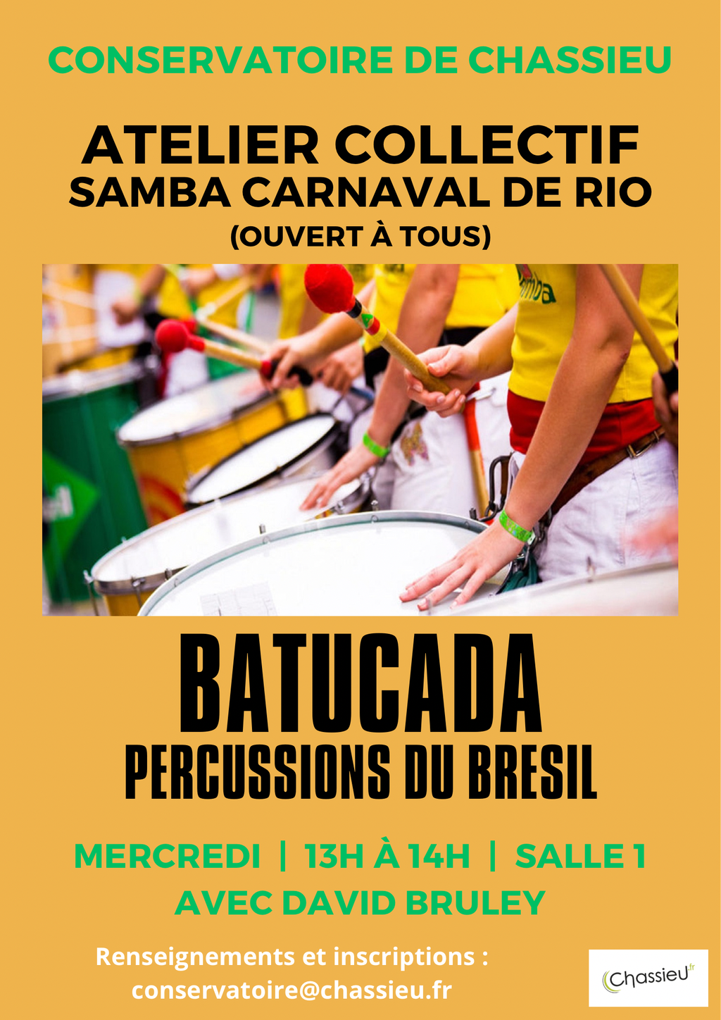 Depuis septembre 2023, j’ai créé l’Atelier de Percussions Traditionnelles du Brésil ouvert à tous sans connaissances musicales ou solfégique nécéssaire ainsi que le cursus Musique et Danse à destination des enfants à partir de 6 ans, que j’ai le plaisir de CO-animer avec Laurence RICHEZ, professeur de Danse Jazz au Conservatoire.