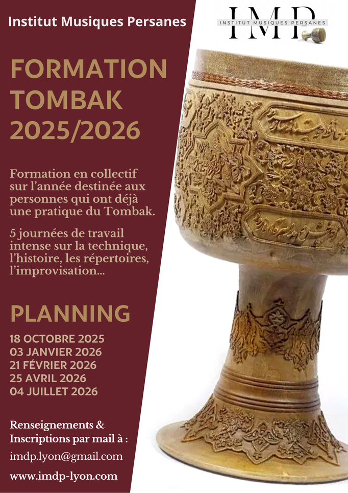 Enfin, tout au long de l'année, l'I.M.P. organise des stages ponctuels ou des formations à l'année sur des thématiques particulières. Pour toutes les infos sur l’Institut des Musiques Persanes :
